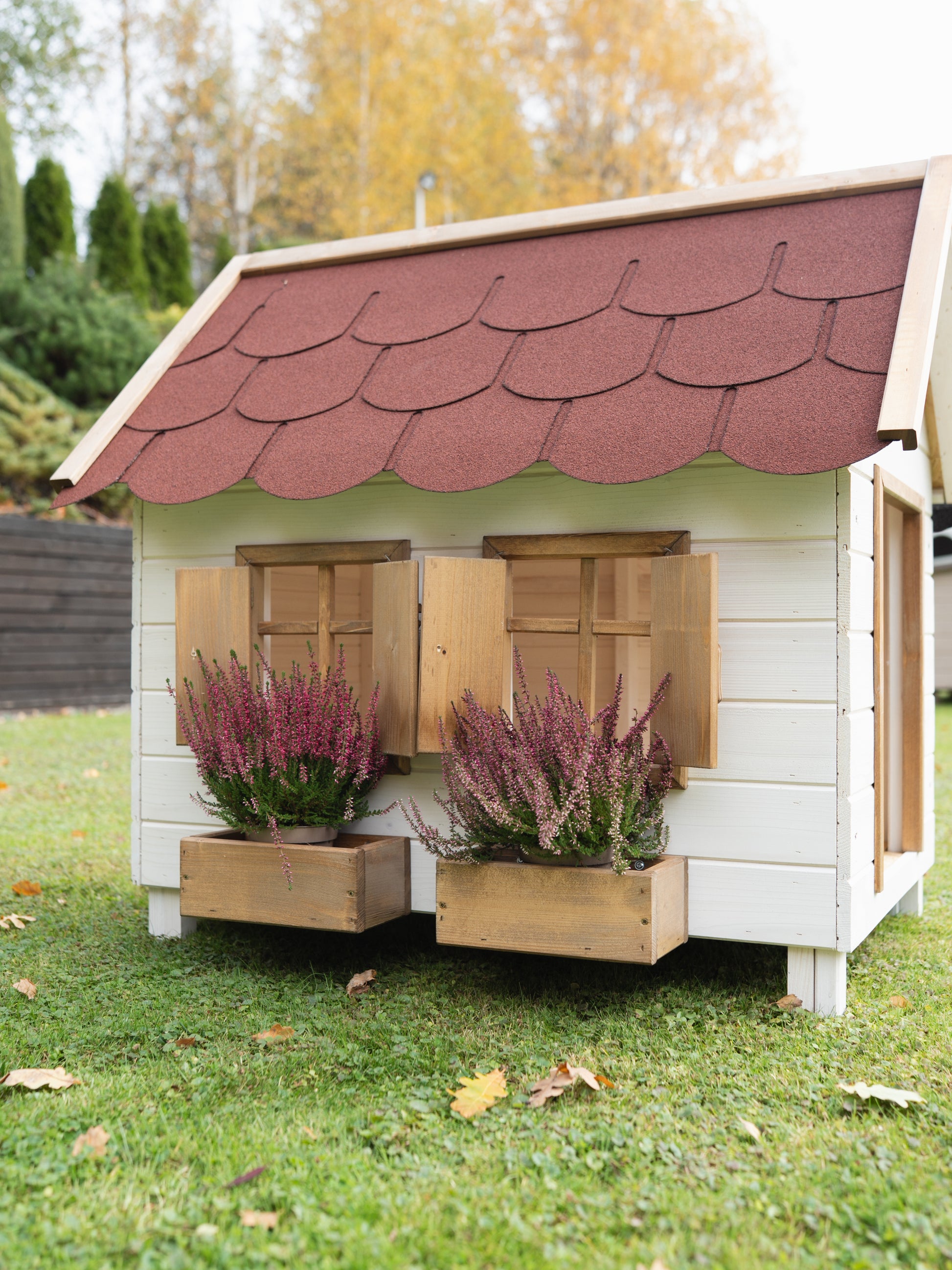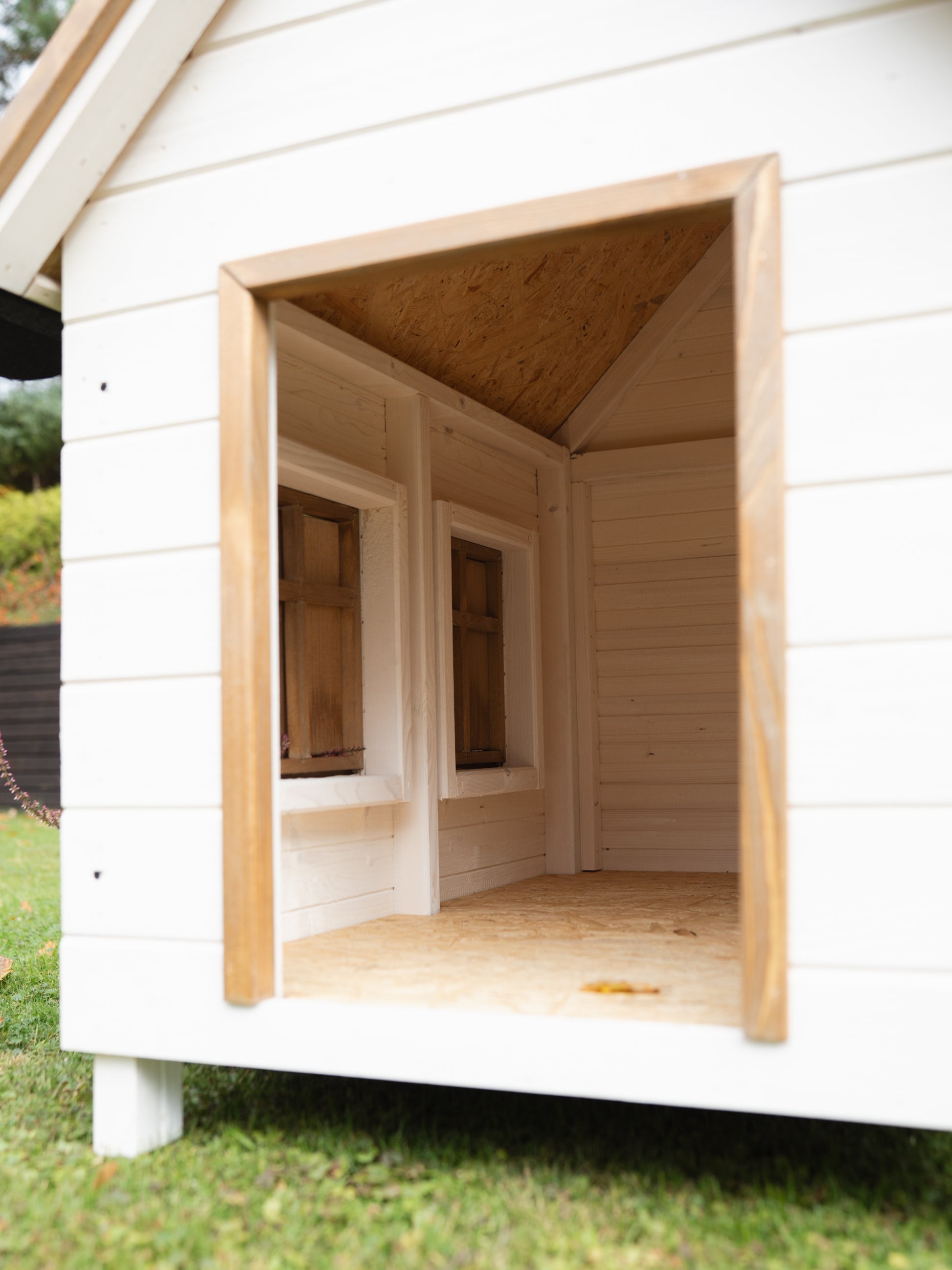 Produkt wyposażony został w wygodne, duże otwierane drzwi wejściowe , zamykane okienka , które można zamykać na noc oraz zimę , solidny dach pokryty papą , oraz ozdobne doniczki w , których można posadzić ulubione kwiaty. Na dnie znajduję się płyta HDF. Buda została wykonana z najwyższej jakości drewna pochodzącego z polskich, ekologicznych lasów.