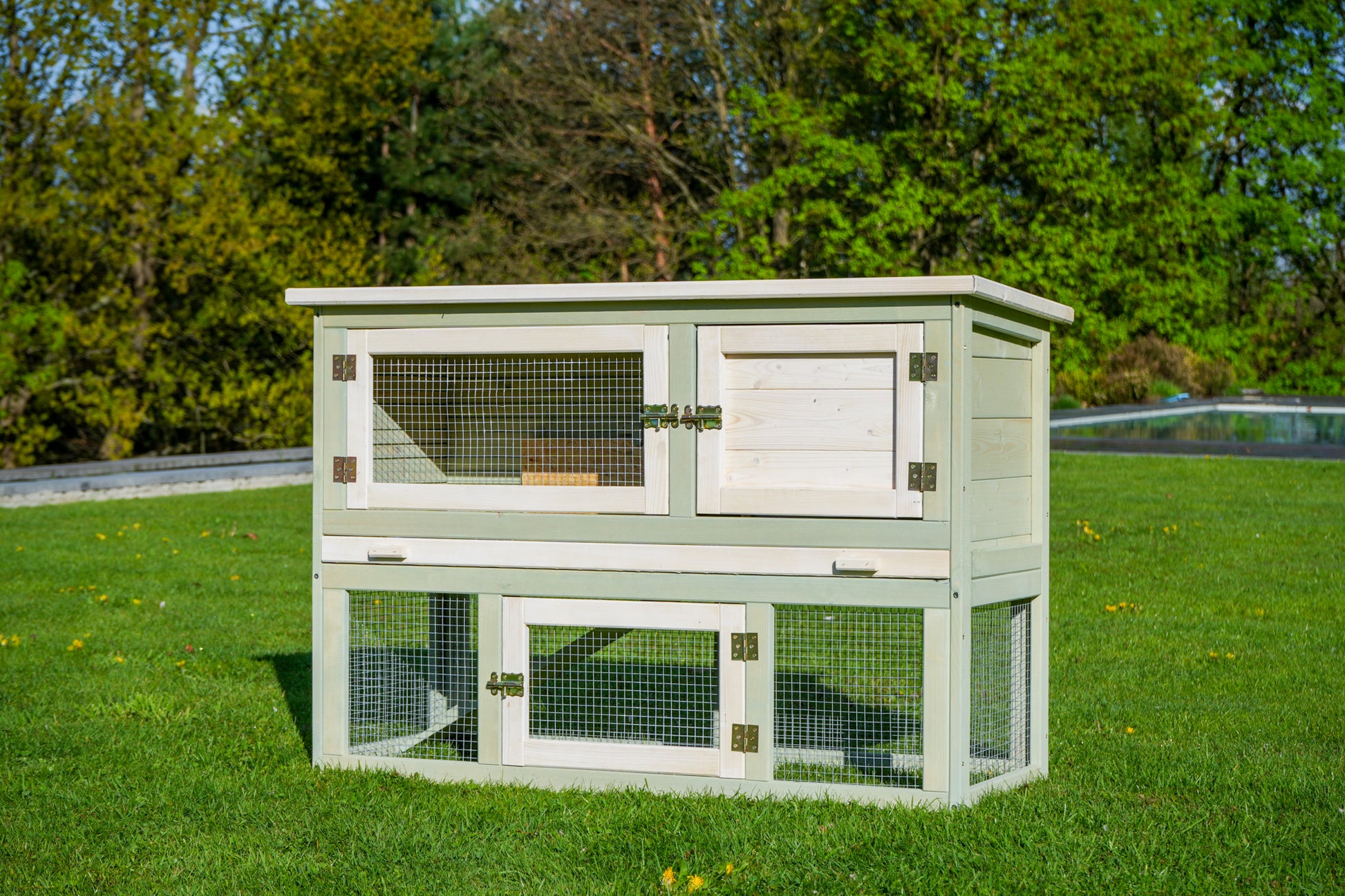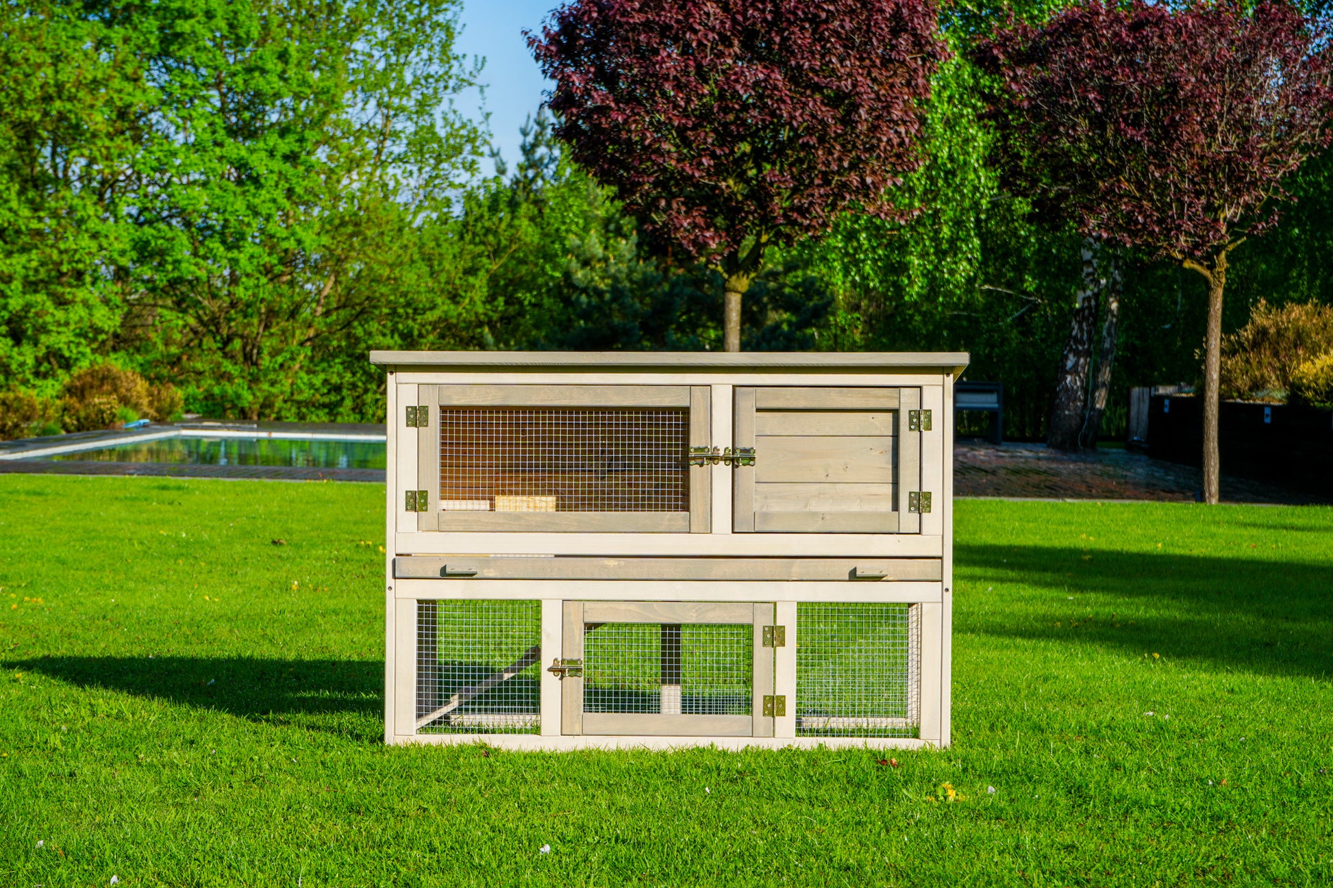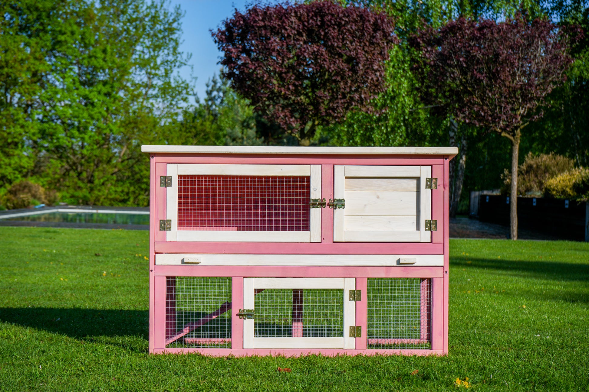 Produkt ten skonstruowano z solidnego, malowanego drewna , które jest trwałe i bezpieczne dla zwierząt. Podniesione siedlisko zapewnia Twoim małym zwierzętom bezpieczeństwo a zarazem zabawę . Zaprojektowana z myślą o łatwym i szybkim czyszczeniu klatka zawiera dużą wyjmowaną szufladę. Wybieg na zewnątrz z trwałym ogrodzeniem w postaci siatki zapewnia wystarczającą wentylację oraz utrzymuje zwierzęta chronione, poza zasięgiem drapieżników . Zamykane drzwi pozwolą nam na wiele szybkich i wygodnych rozwiązań .