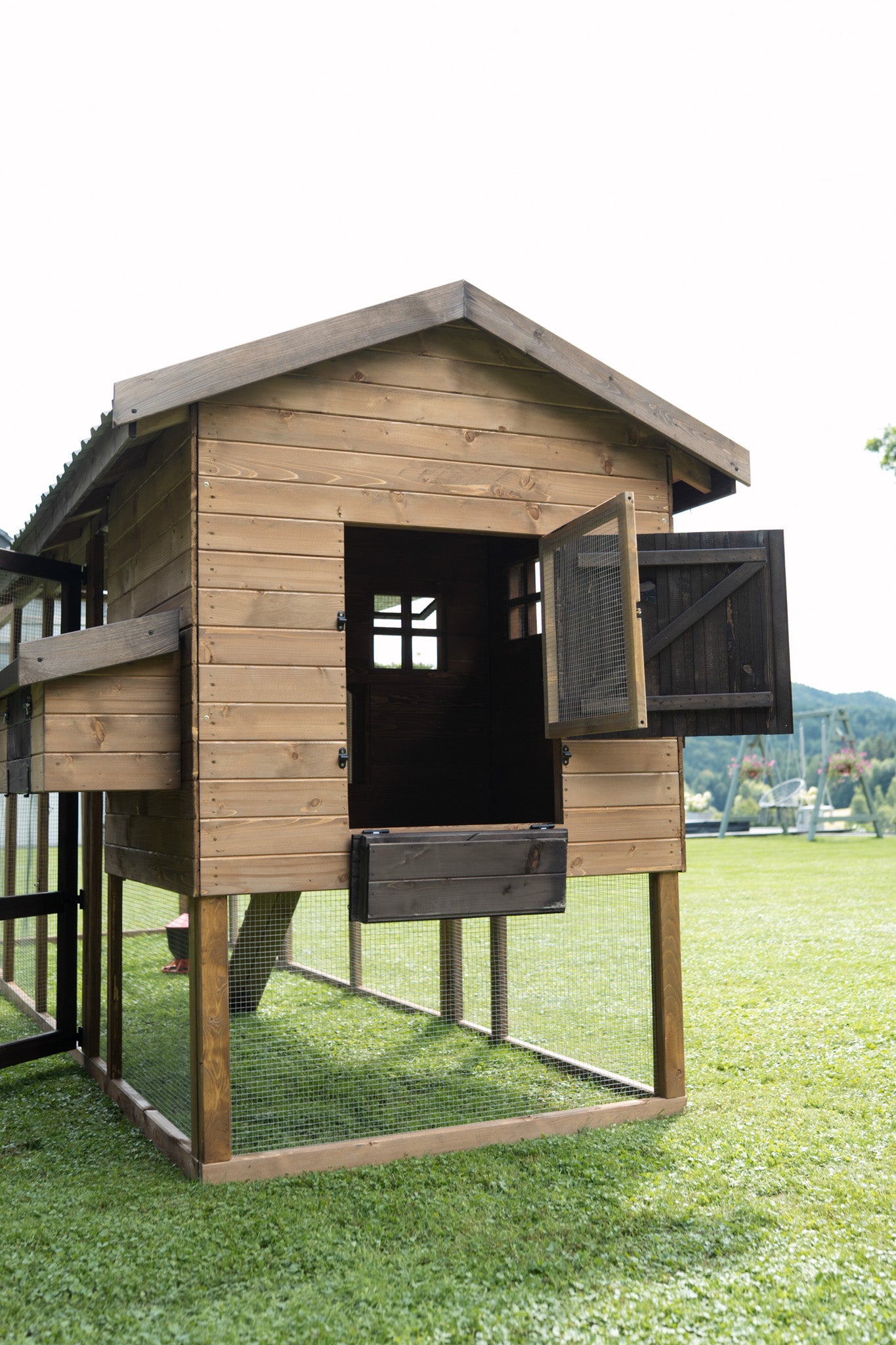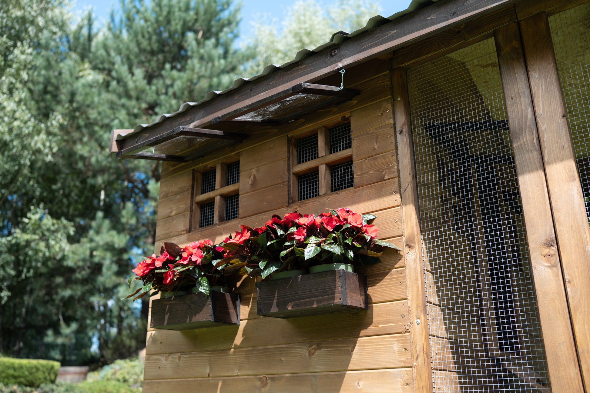 Nasze kurniki są przeznaczone jako domki noclegowe dla kur, a nie do całodobowego przetrzymywania zwierząt w zamknięciu. Kury powinny być zamykane w kurniku tylko na noc w celu ochrony przed drapieżnikami, a w ciągu dnia powinny korzystać z wybiegu i swobodnego dostępu do przestrzeni na zewnątrz.