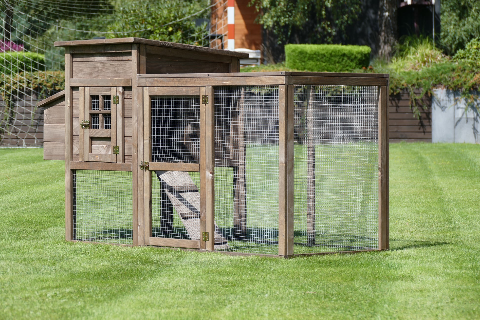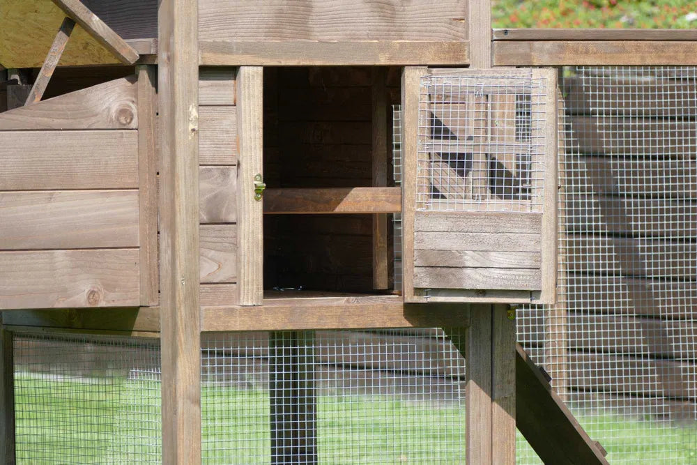 - zewnętrzne gniazdo dla kur na jajka z podnoszonym dachem