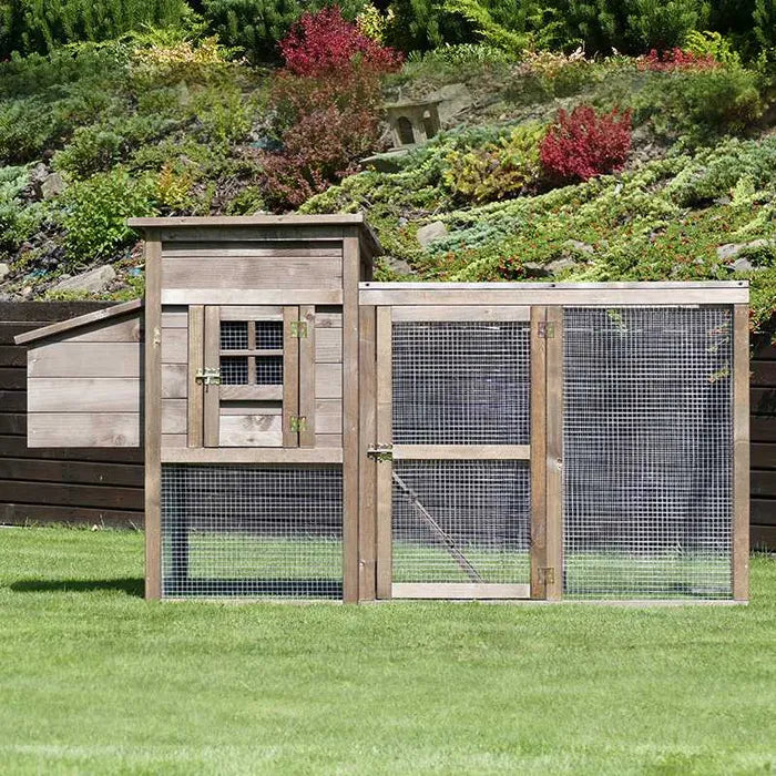 Kurnik wyposażony został w wiele funkcjonalnych rozwiązań. Posiada on drewnianą drabinkę, która zapewnia wygodny dostęp do górnej części, grzędę, budkę lęgową, jako opcje - metalową szufladę która ułatwia utrzymanie czystości oraz otwierane dachy pokryte papą. Kury lubią spędzać czas na pewnej wysokości ze względów bezpieczeństwa, dlatego sama buda znajduje się na podwyższeniu. Kurnik posiada również drzwi na froncie które można otwierać i zamykać. Integralną jego częścią jest park/wybieg posiadający duże drzwi oraz zdejmowaną pokrywę. Buda została wykonana z najwyższej jakości drewna iglastego pochodzącego z polskich lasów.