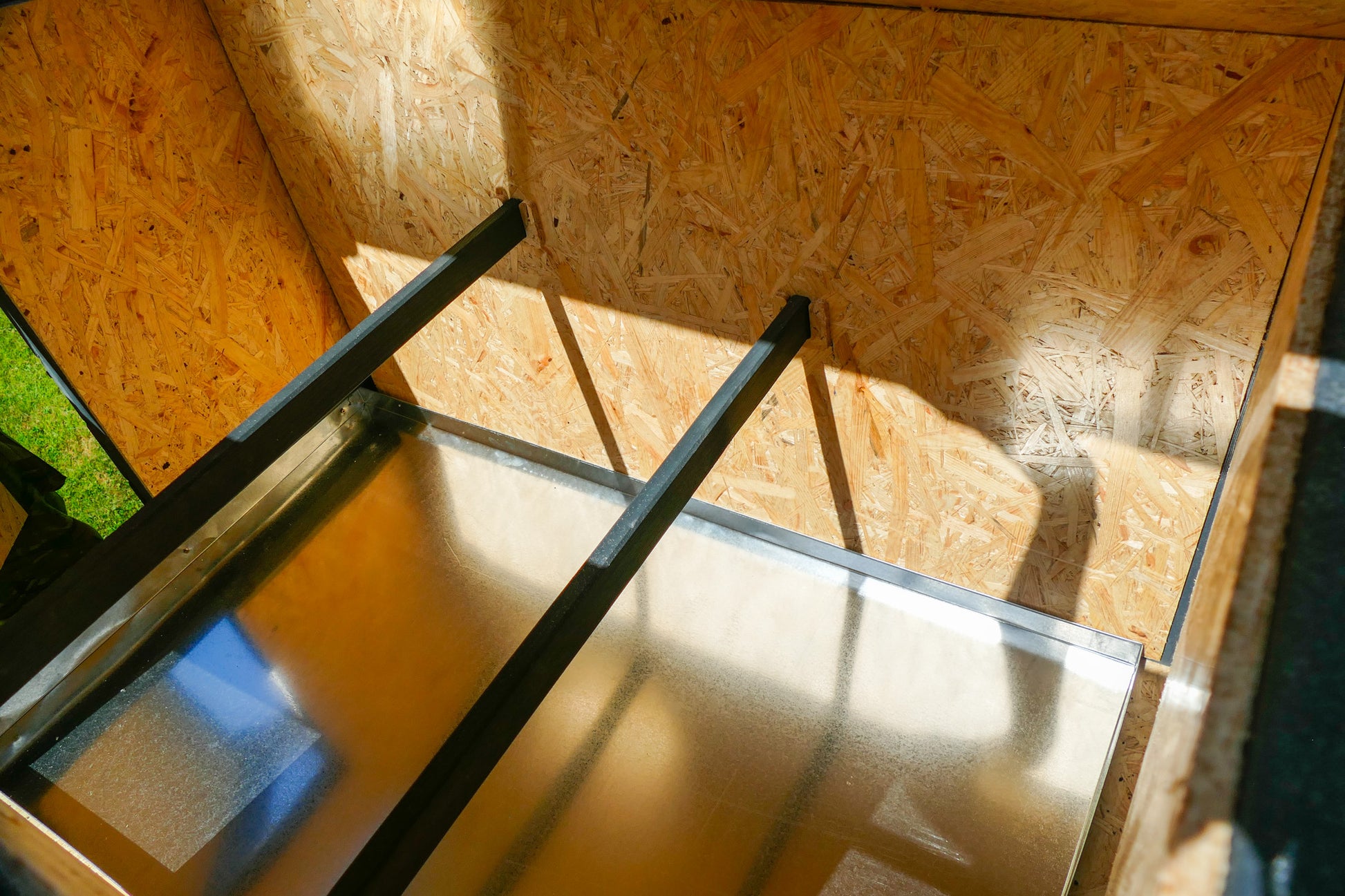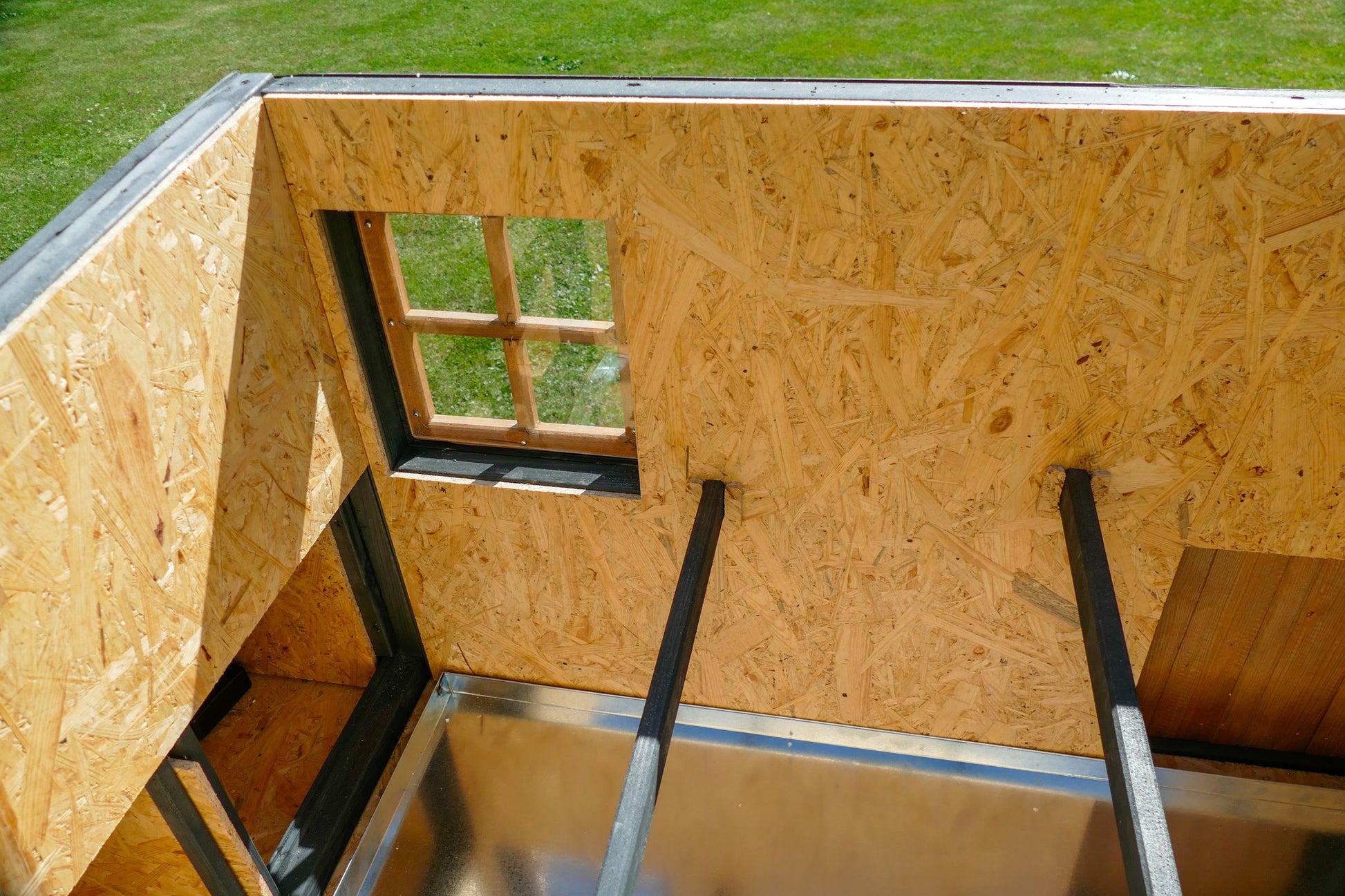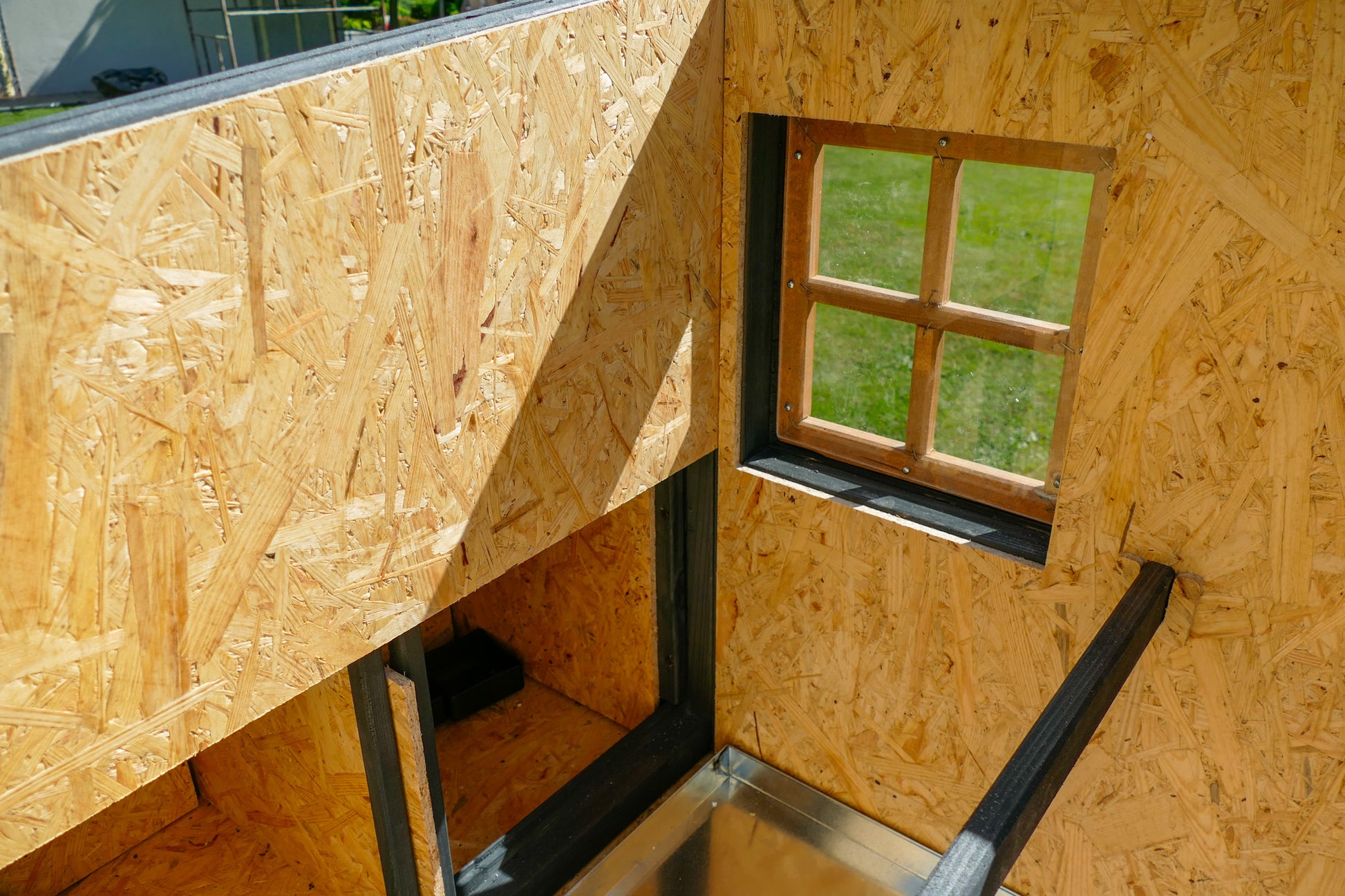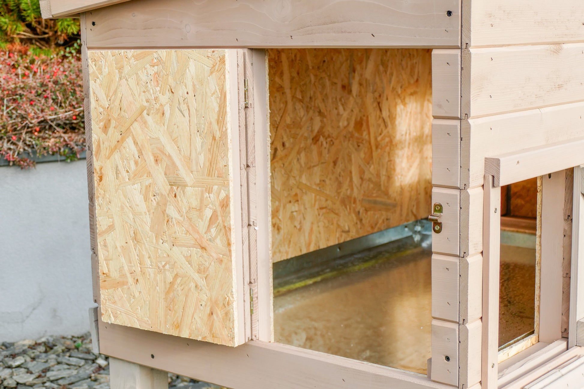 - kurnik ocieplony płytą styropianową o grubości 3cm, dodatkowo na nią położona jest płyta OSB, aby kury nie miały dostępu do styropianu