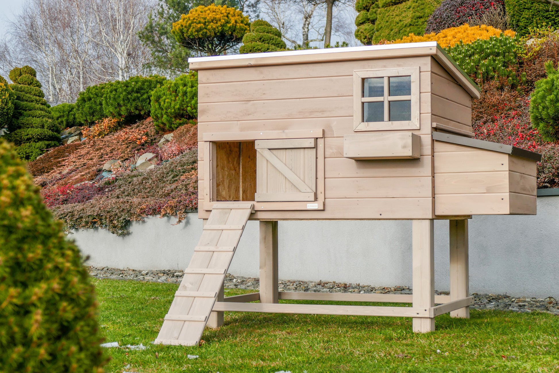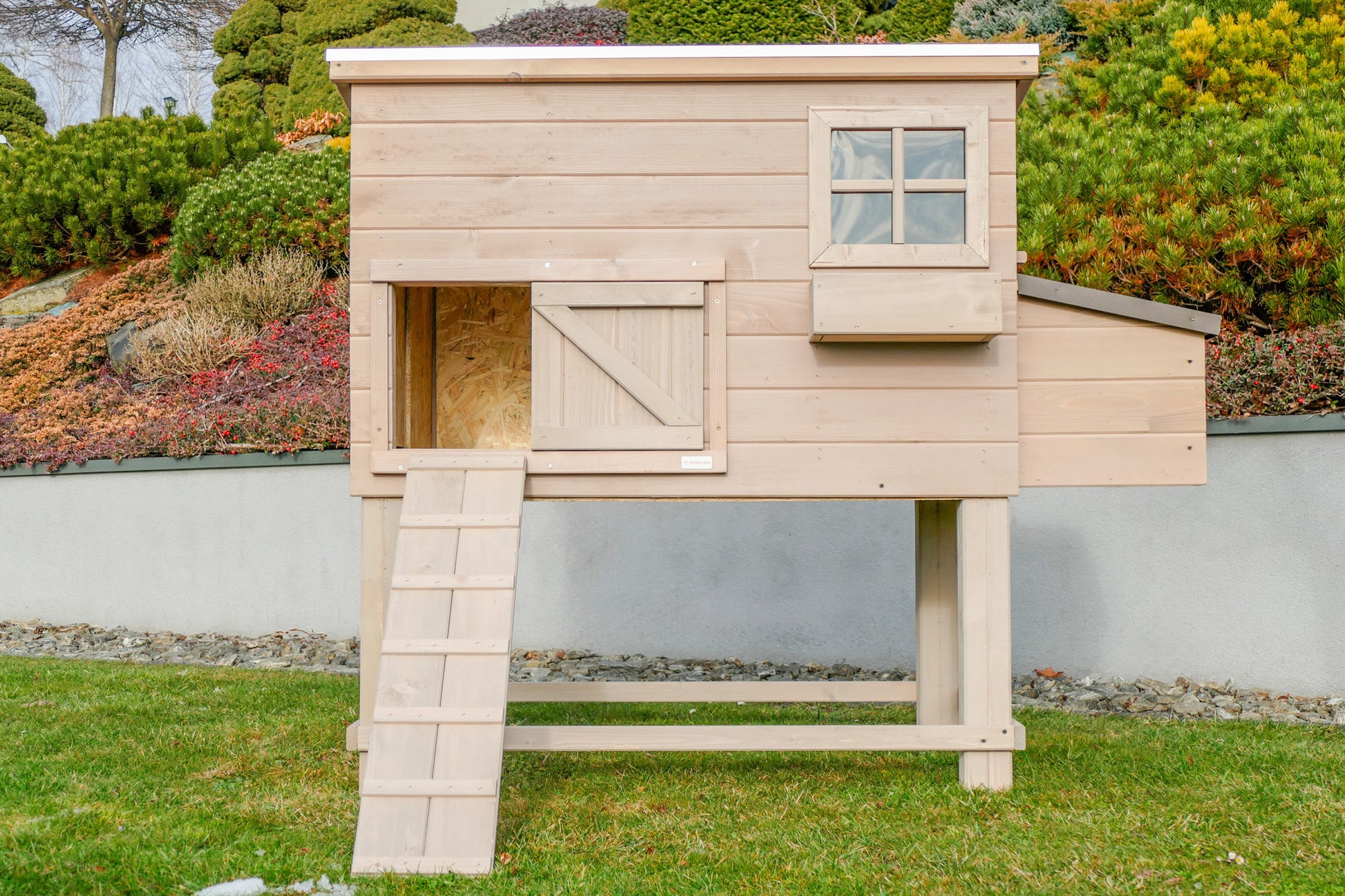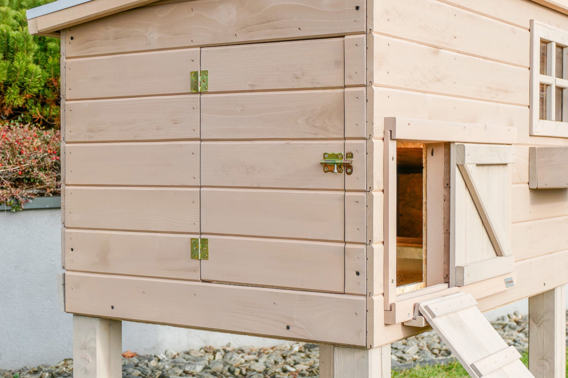 Kurnik ROCKY HIGH z metalową szufladą - to drewniany domek dla kur , który zapewni im pełną swobodę i komfort .