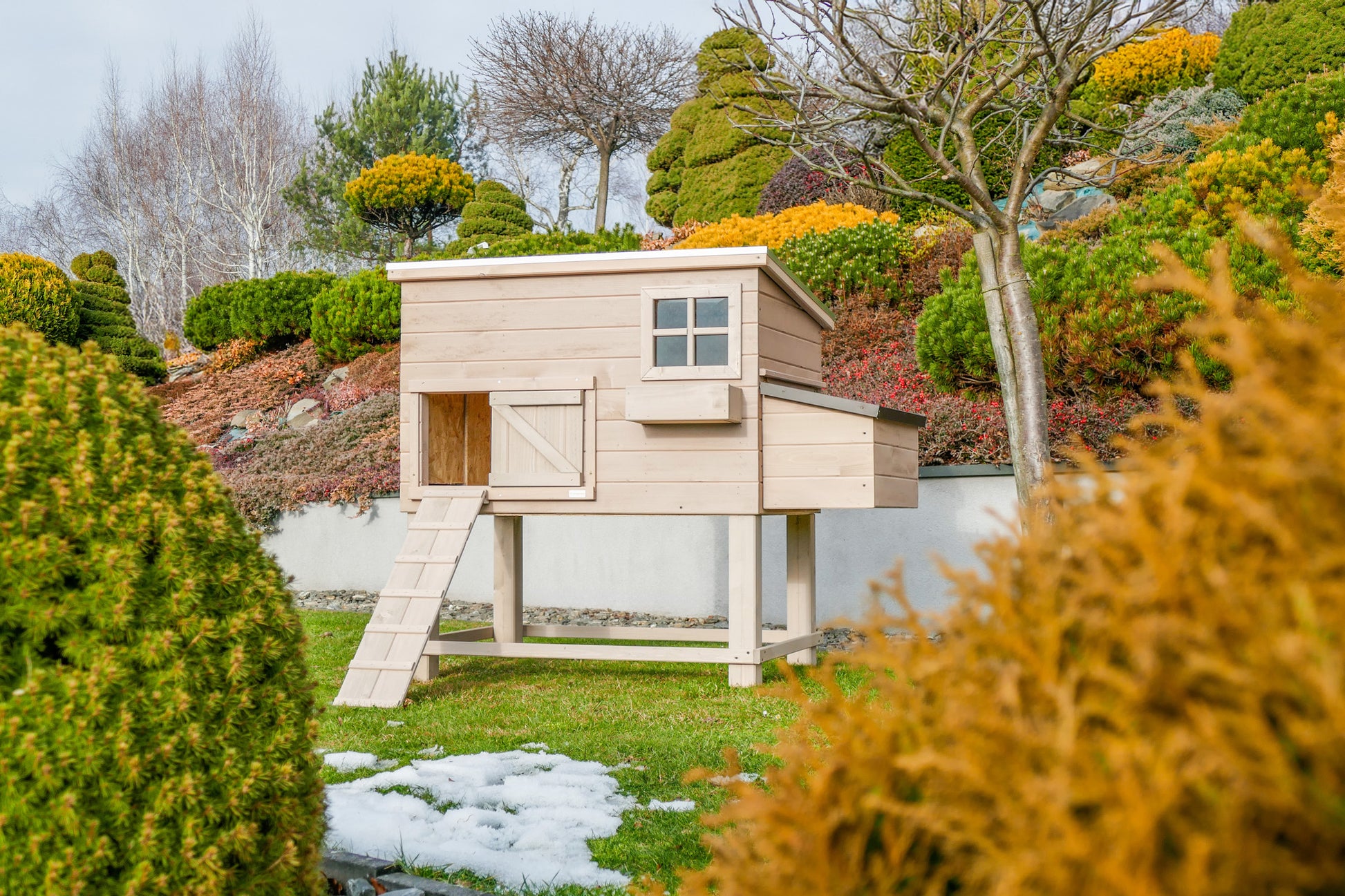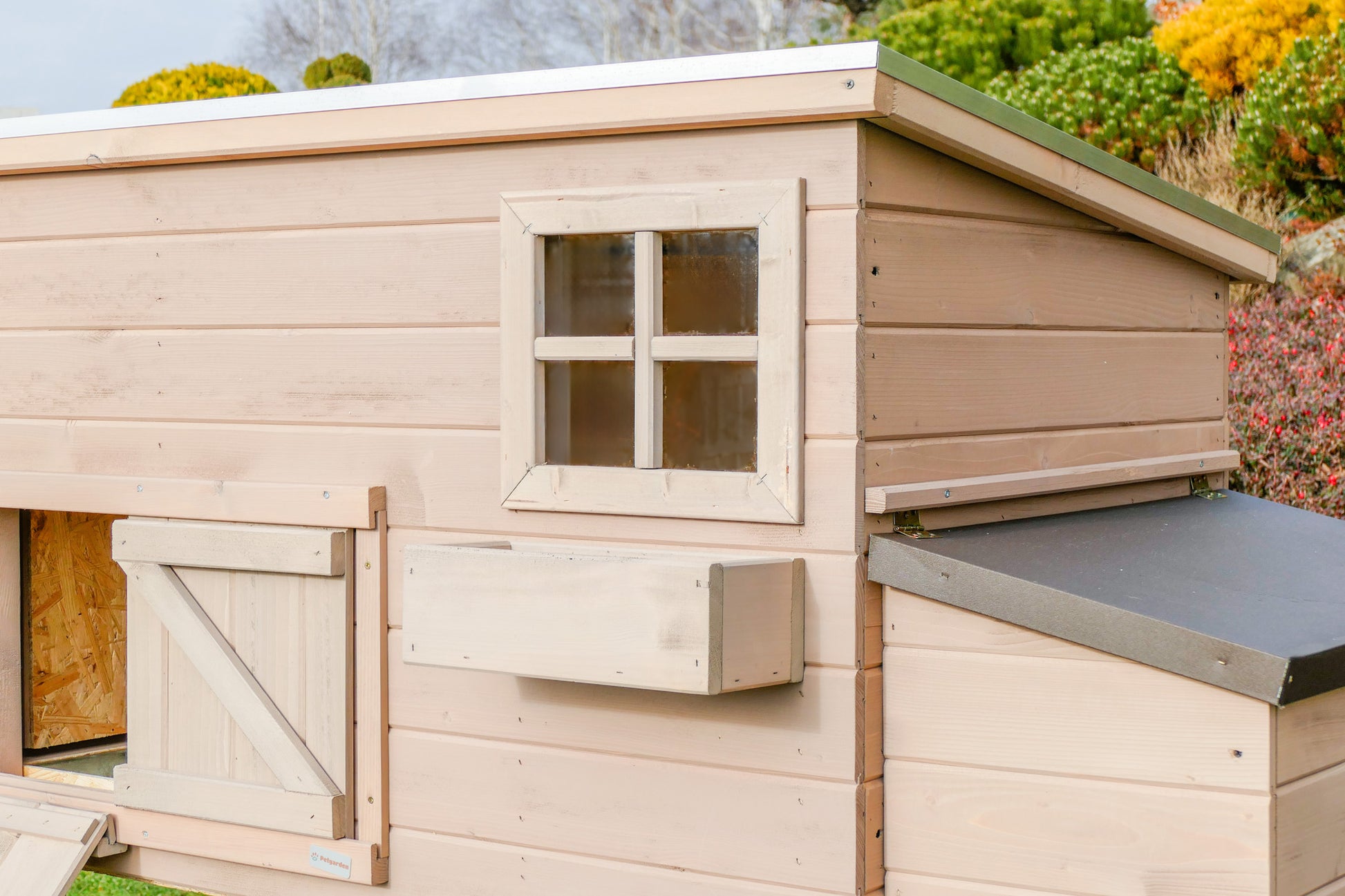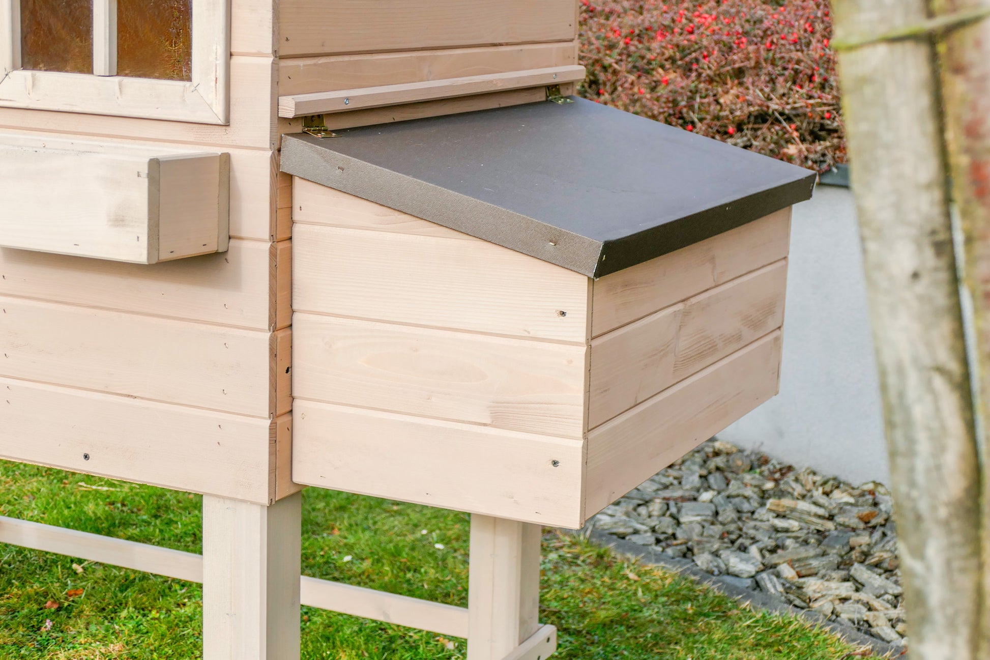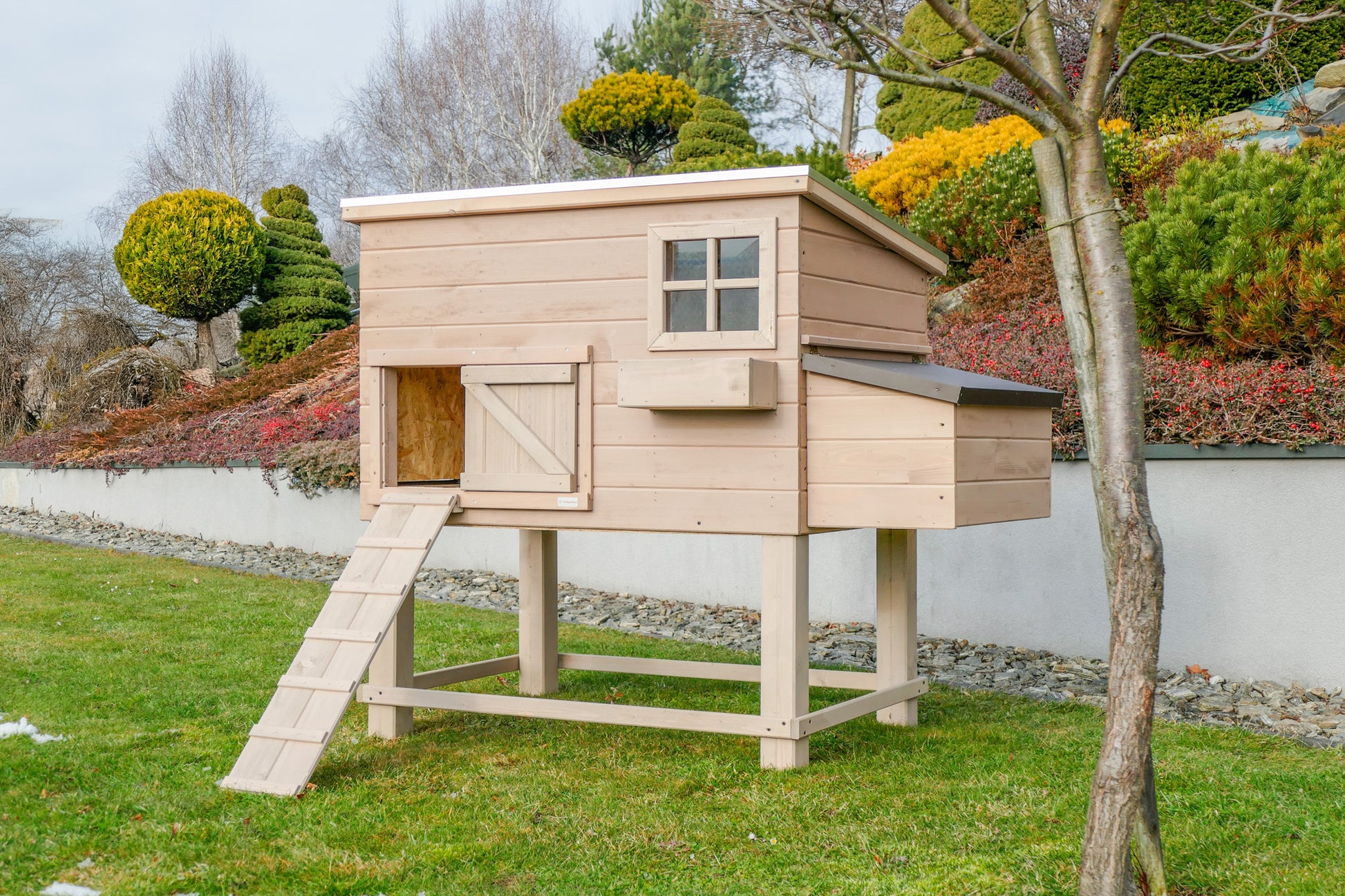 Kurnik ROCKY HIGH z metalową szufladą - to drewniany domek dla kur , który zapewni im pełną swobodę i komfort .